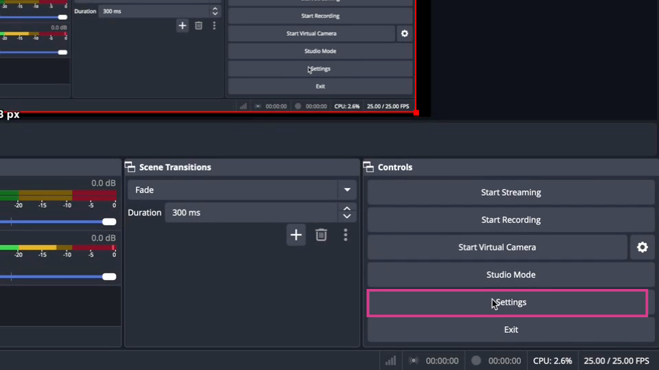 Step 3: Familiarize yourself with the OBS home screen. The black area at the top is the preview section.