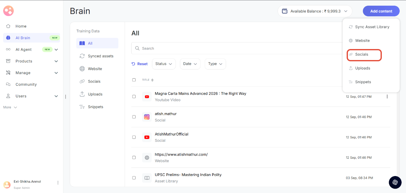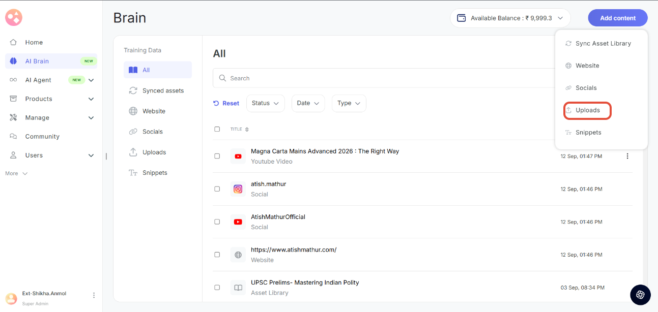 Step 1: Go to the left navbar and click  'AI Brain'