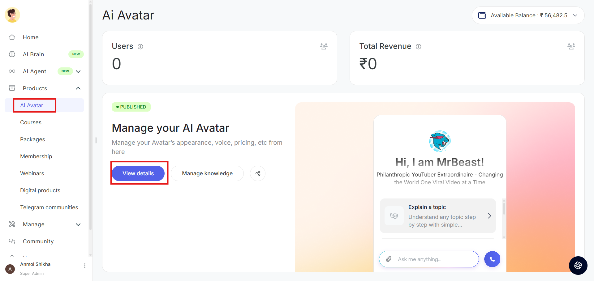 Step 2: Select AI Avatar and then click on View Details.
