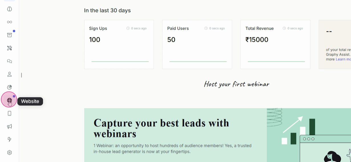 Step 1: From your Graphy dashboard, go to the left panel and click on Website.